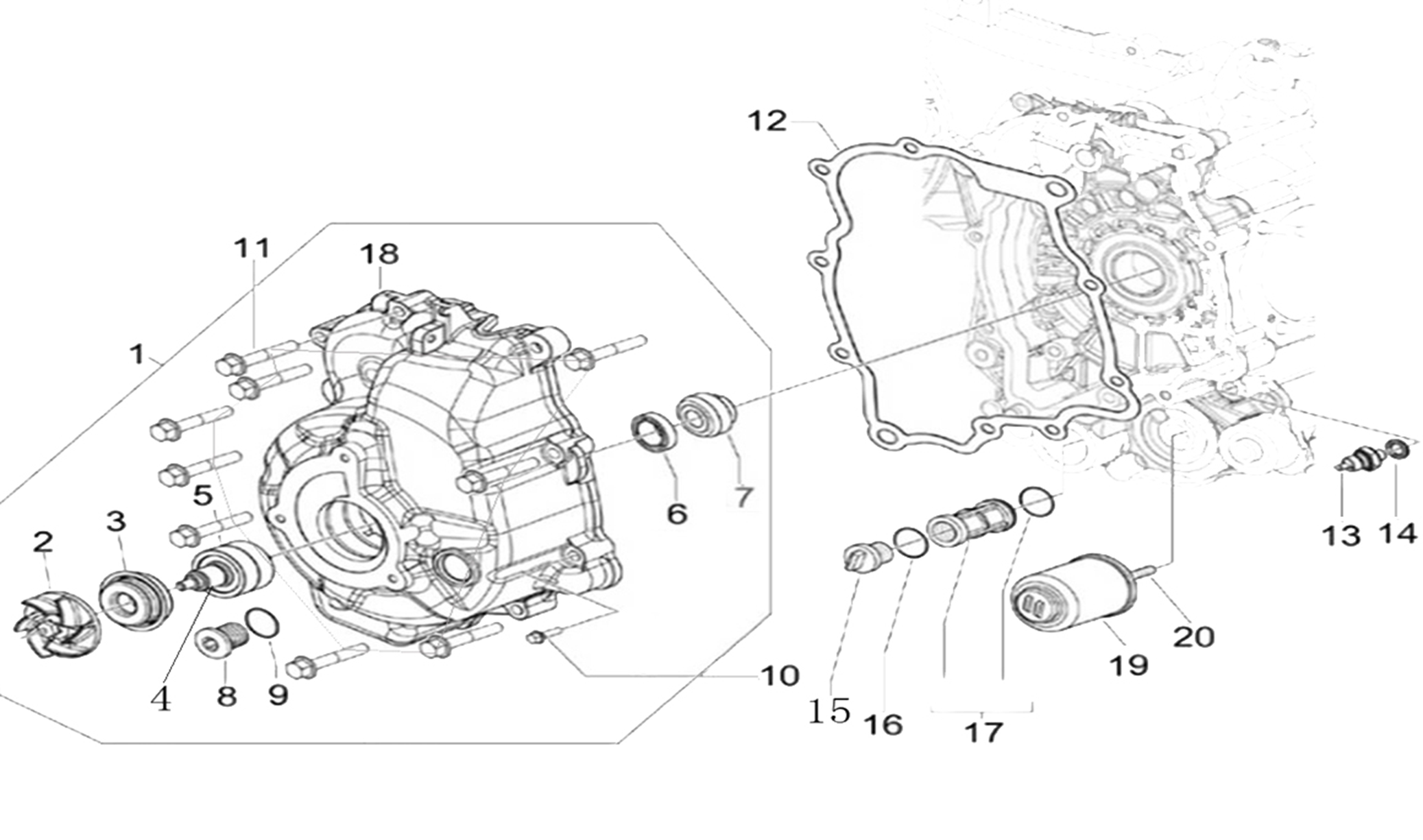 Vodní čerpadlo a olejový filtr